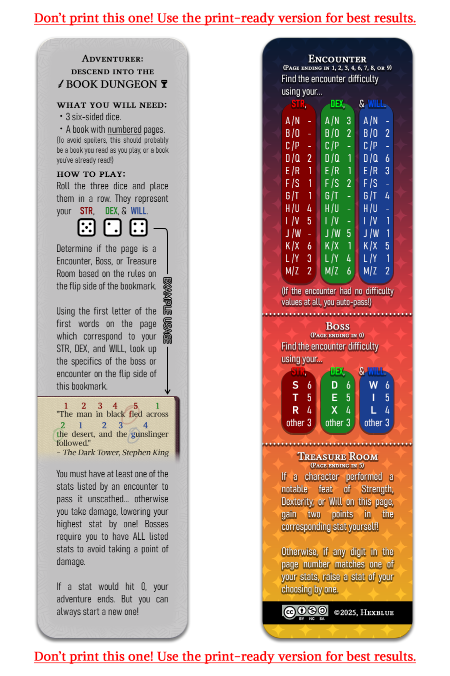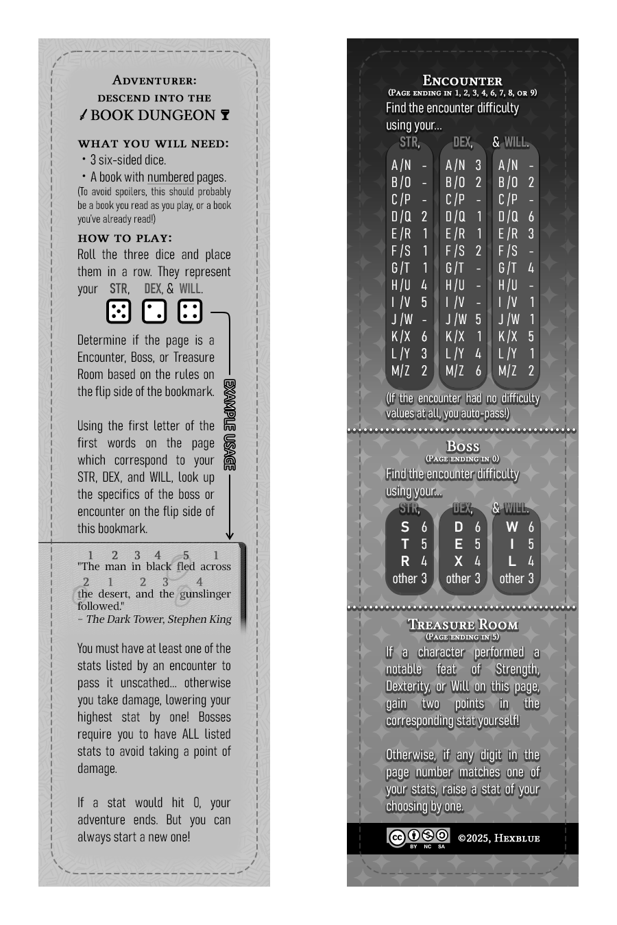 Bookmark Dungeon- Adventure alongside your book's heroes, or simply give any genre of book a little dungeon crawl on the side.